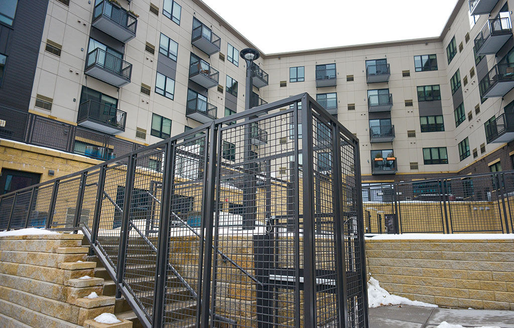 Description: AlumaDecks with AlumaMesh rails, Stairs with AlumaMesh rails and hand rail, AlumaMesh fence and AlumaMesh gates.